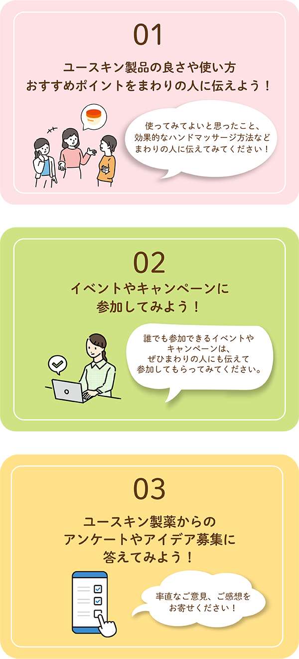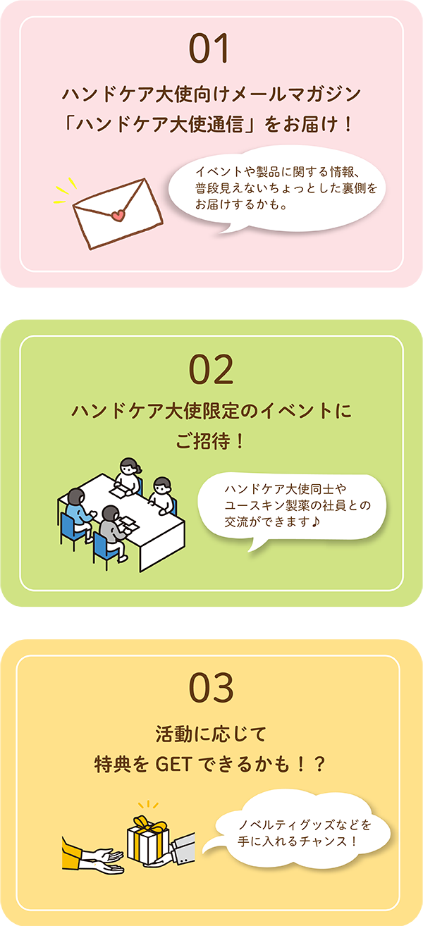 ・ご応募いただいた皆さまの中からハンドケア大使を認定し、