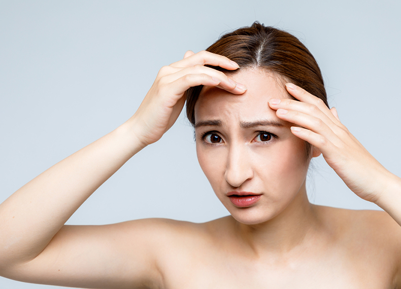 おでこは髪や手、汗などの刺激を受けやすく、ちょっとした摩擦でも炎症を悪化させてしまうことがあります。前髪がおでこに触れると、髪についている皮脂やホコリが付着しやすくなるため、