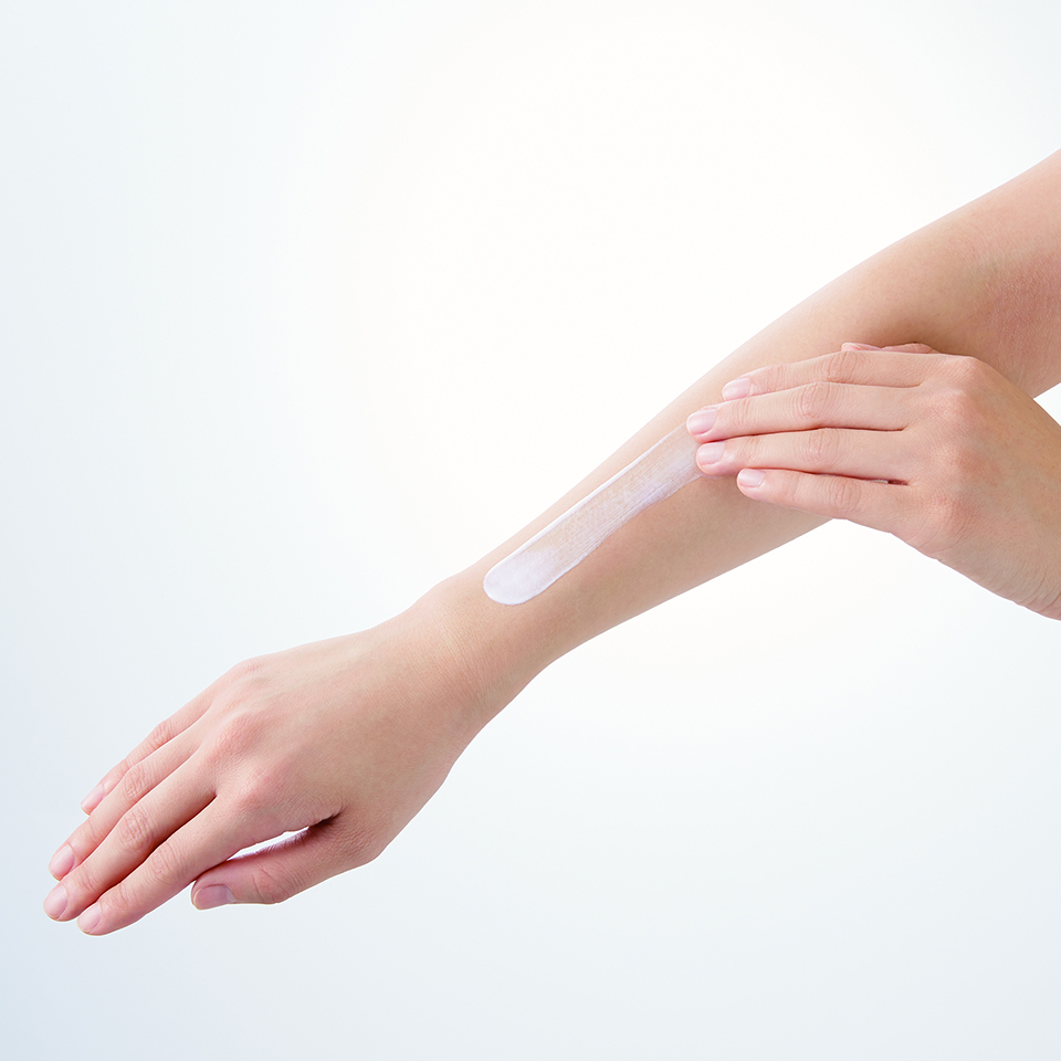 製品の安全性を確保するために、製品を皮ふに塗った際の反応を観察し、皮ふに対する刺激の強さを調べる試験です。皮ふ科専門医の立ち合いのもと確認を行います。