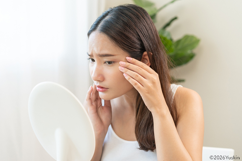 UV-Aの影響により、皮脂を好むアクネ菌やマラセチア菌が増えやすくなり、ニキビができやすくなるといわれています。