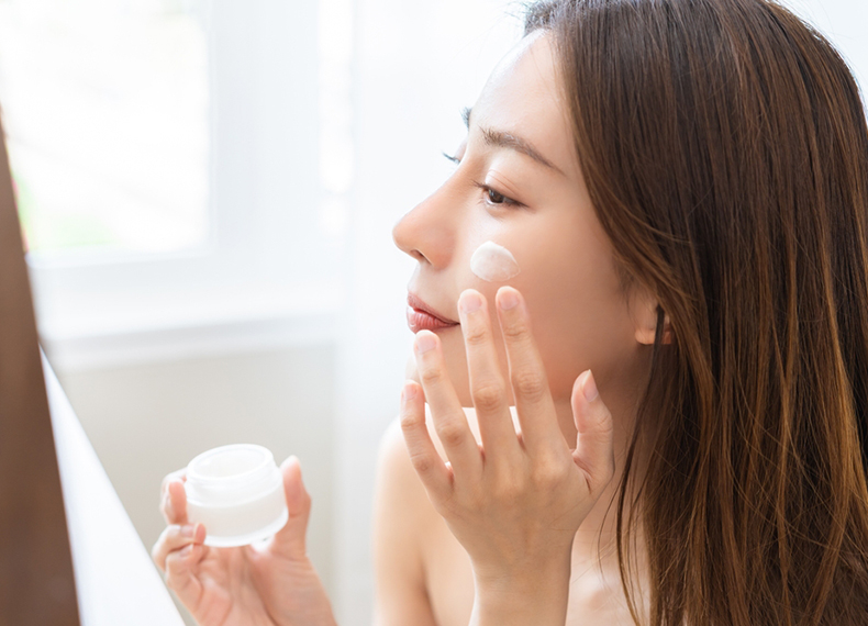 1.化粧水や乳液などで肌を整えた後に、仕上げとしてクリームを使う。