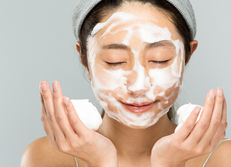 洗顔料はしっかり泡立て、手が直接肌に触れないように泡で包み込むように洗います。ゴシゴシとこすると摩擦が加わり、炎症を悪化させるおそれがあるため注意が必要です。