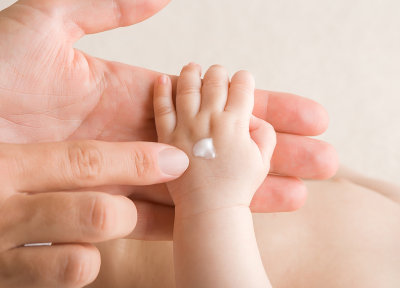 赤ちゃんの肌は乾燥しやすく、肌トラブルを起こしやすいので、保湿ケアは早いうちから行いましょう。早めに保湿ケアを始めることで、アトピー性皮膚炎の発症リスクを抑えられるといわれています。
